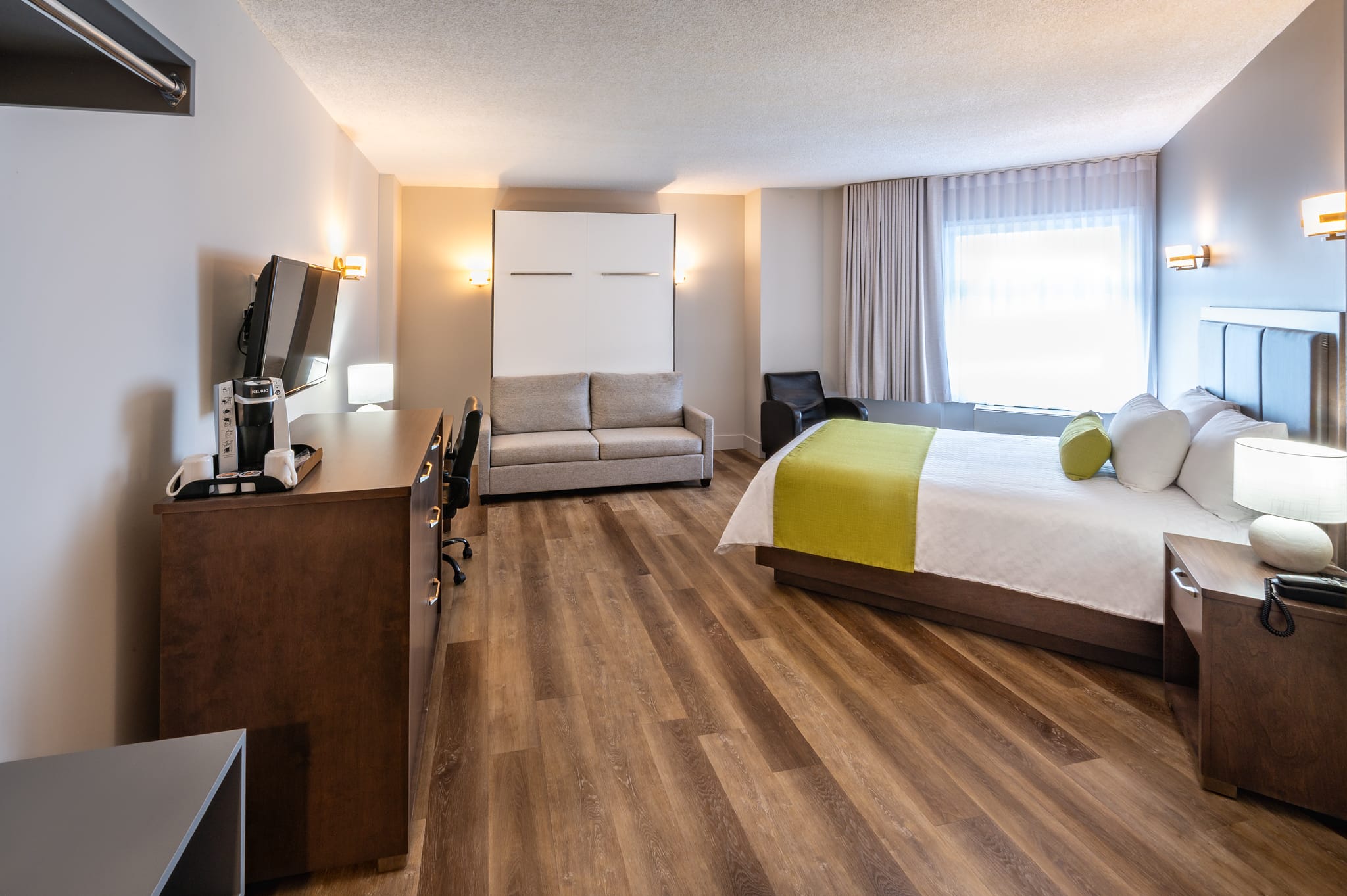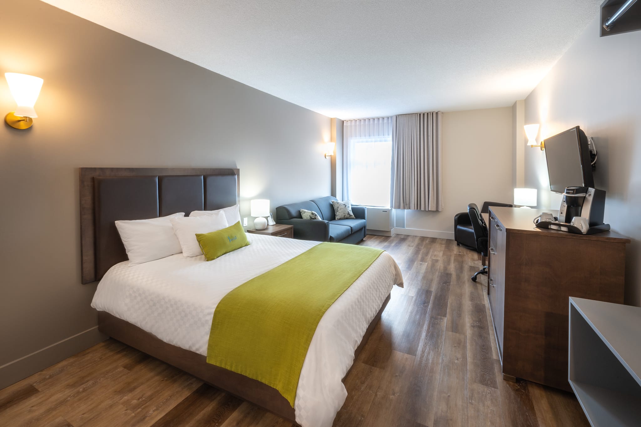 L’aménagement de nos 85 chambres spacieuses et fonctionnelles est conçu pour prolonger votre confort dans des lieux chaleureux.